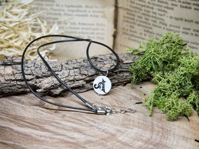 Festett gyöngyház medál nyakláncon.