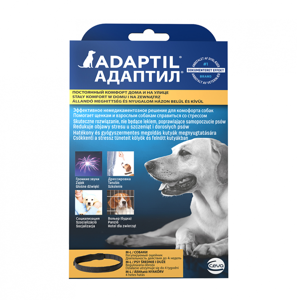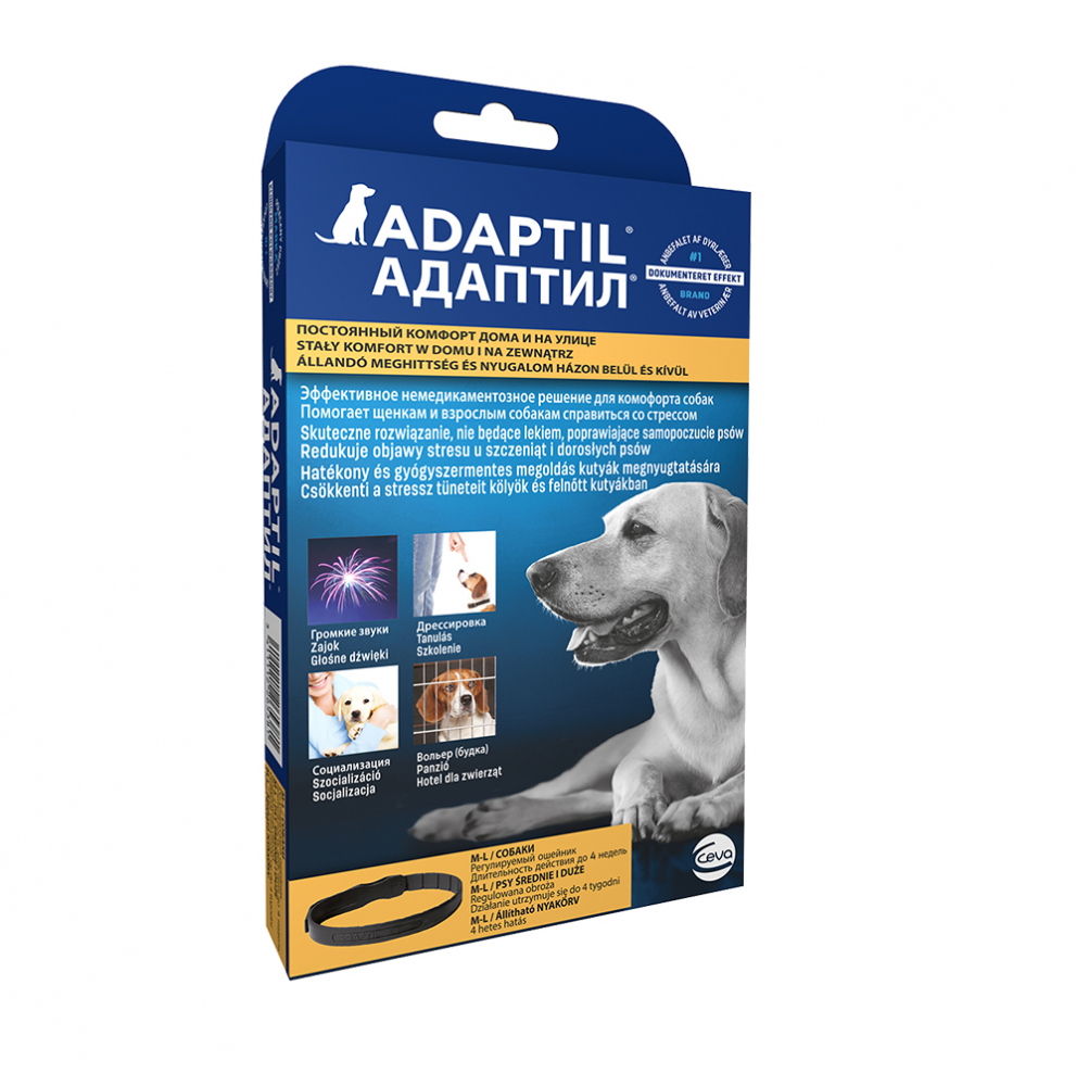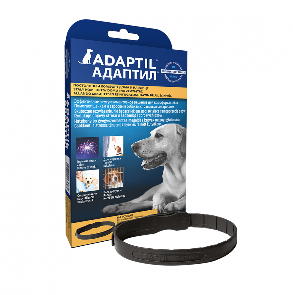 Kölyök és kistermetű kutya esetén az ADAPTIL S-M nyakörv (maximum 37,5 cm nyakkerületre), míg közepes és nagytestű kutya esetén az ADAPTIL M-L nyakörv (maximum 62,5 cm nyakkerületre) viselete ajánlott.