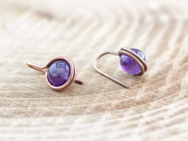 Ametiszt lógós drót fülbevaló.