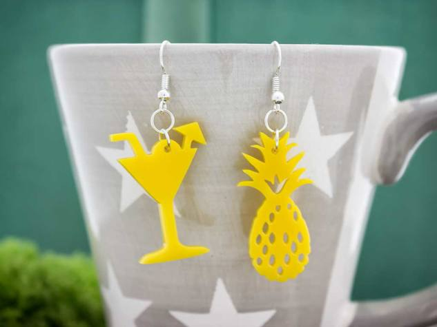 Egyedi tervezéssel készült, géppel alakra vágott, majd megmunkált plexi lemezből megálmodott fülbevaló.
