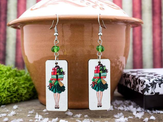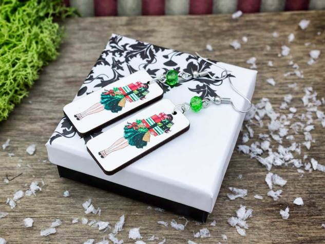 Egyedi tervezéssel készült, géppel alakra vágott, majd megmunkált fa lemezből megálmodott fülbevaló.