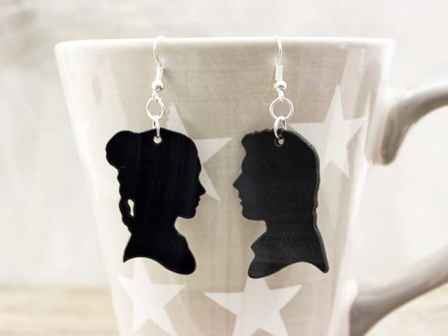 Egyedi tervezéssel készült, géppel alakra vágott, majd megmunkált bakelit lemezből megálmodott fülbevaló.