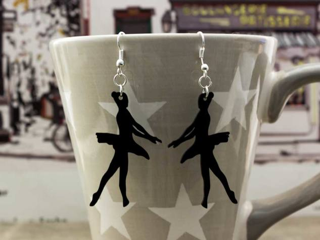 Egyedi tervezéssel készült, géppel alakra vágott, majd megmunkált bakelit lemezből megálmodott fülbevaló.