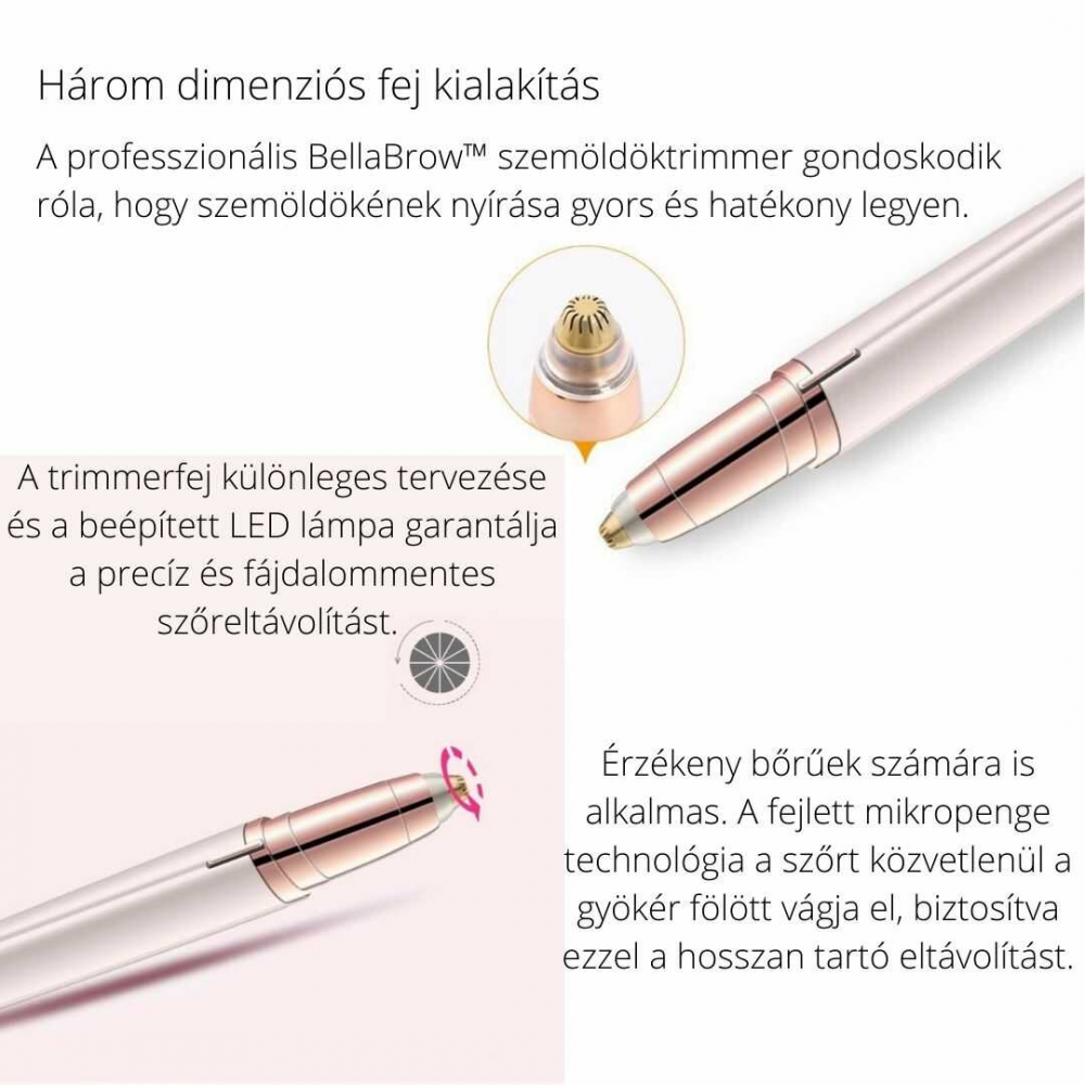 A professzionális BellaBrow™ szemöldöktrimmer gondoskodik arról, hogy szemöldököd formázása gyors és hatékony legyen!