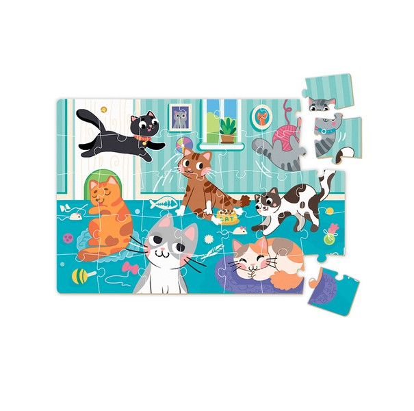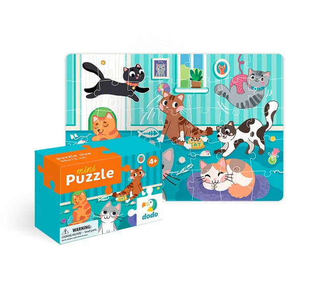 Dodo Mini 35 darabos cicás puzzle. A puzzle darabok kiváló minőségű kemény kartonból készültek, ezáltal könnyen összeilleszthetők. A kirakott kép mérete: 22 cm x 13 cm