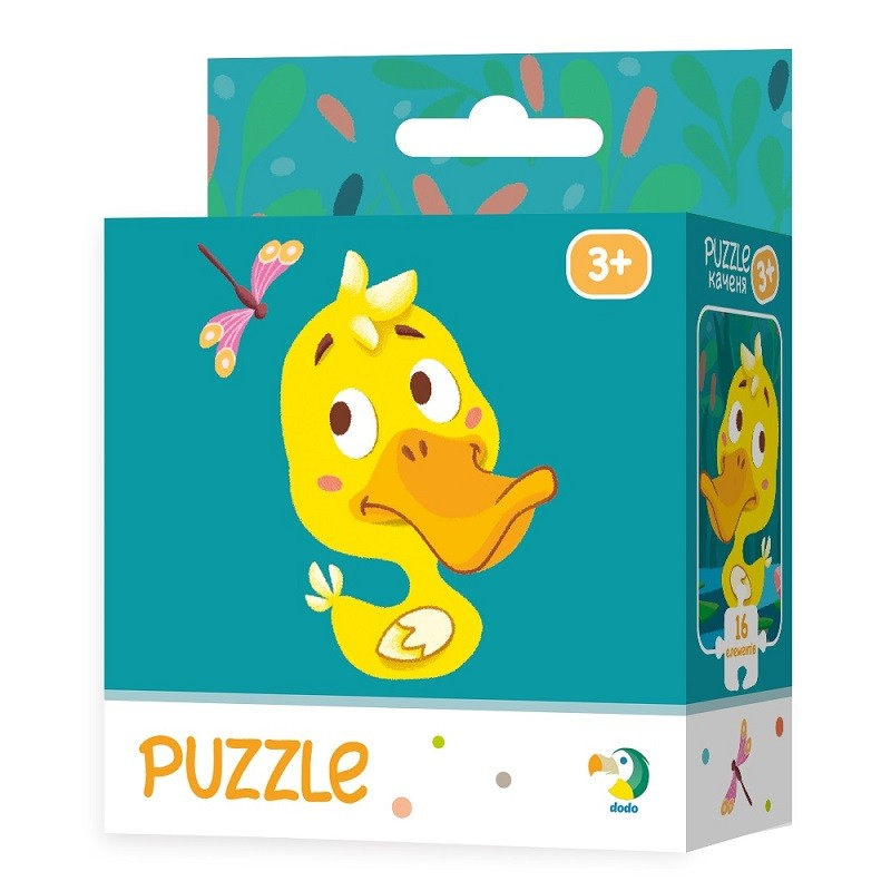 Dodo puzzle 16 db-os kacsás. A nagy méretű puzzle darabok kiváló minőségű kemény kartonból készültek, ezáltal könnyen összeilleszhetők. A kirakott puzzle mérete: 21 cm x 21cm