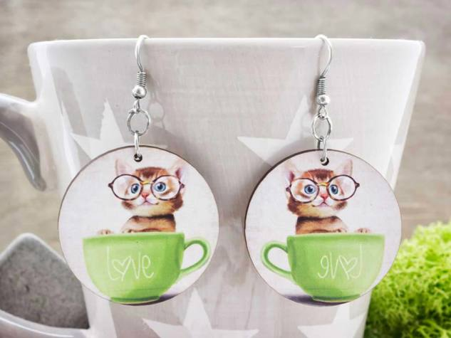 Egyedi tervezéssel készült, géppel alakra vágott, majd megmunkált fa lemezből megálmodott fülbevaló.
