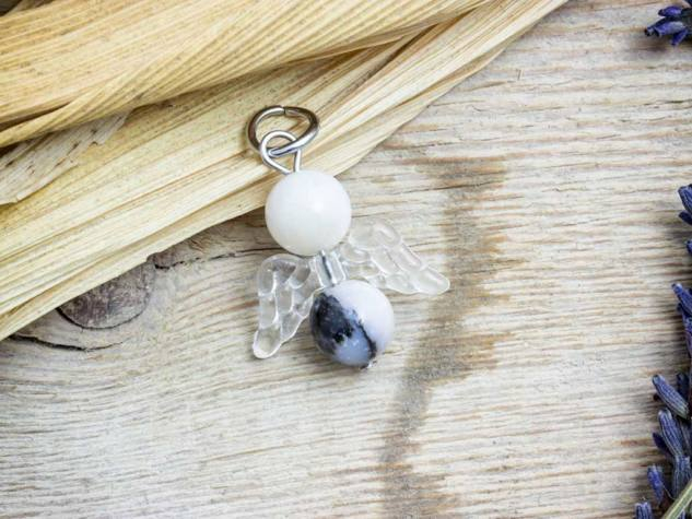 A valódi ásvány medál fém akasztó részét acélból / orvosi fémből készítettük, így tökéletesen antiallergén. Az angyalka szárnya akrillból készült. Az angyalka fejét, és testét valódi 8mm-es pink opál ásvány gyöngyök alkotják.