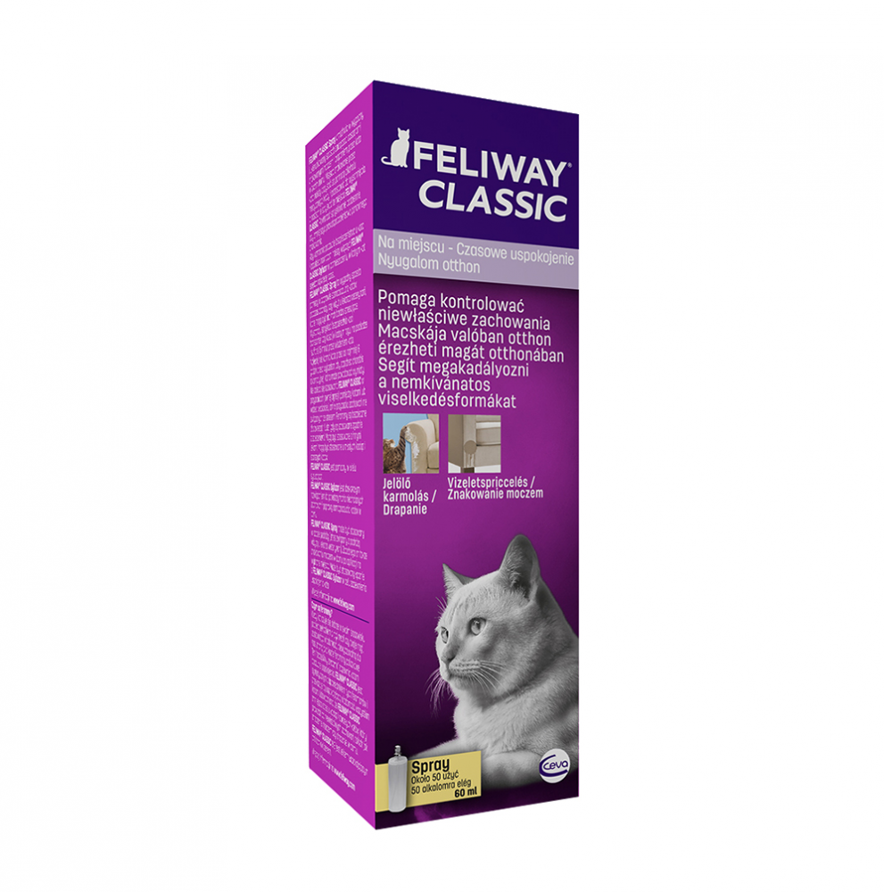 A FELIWAY CLASSIC Spray hatása akár 4-5 órán keresztül fennáll.