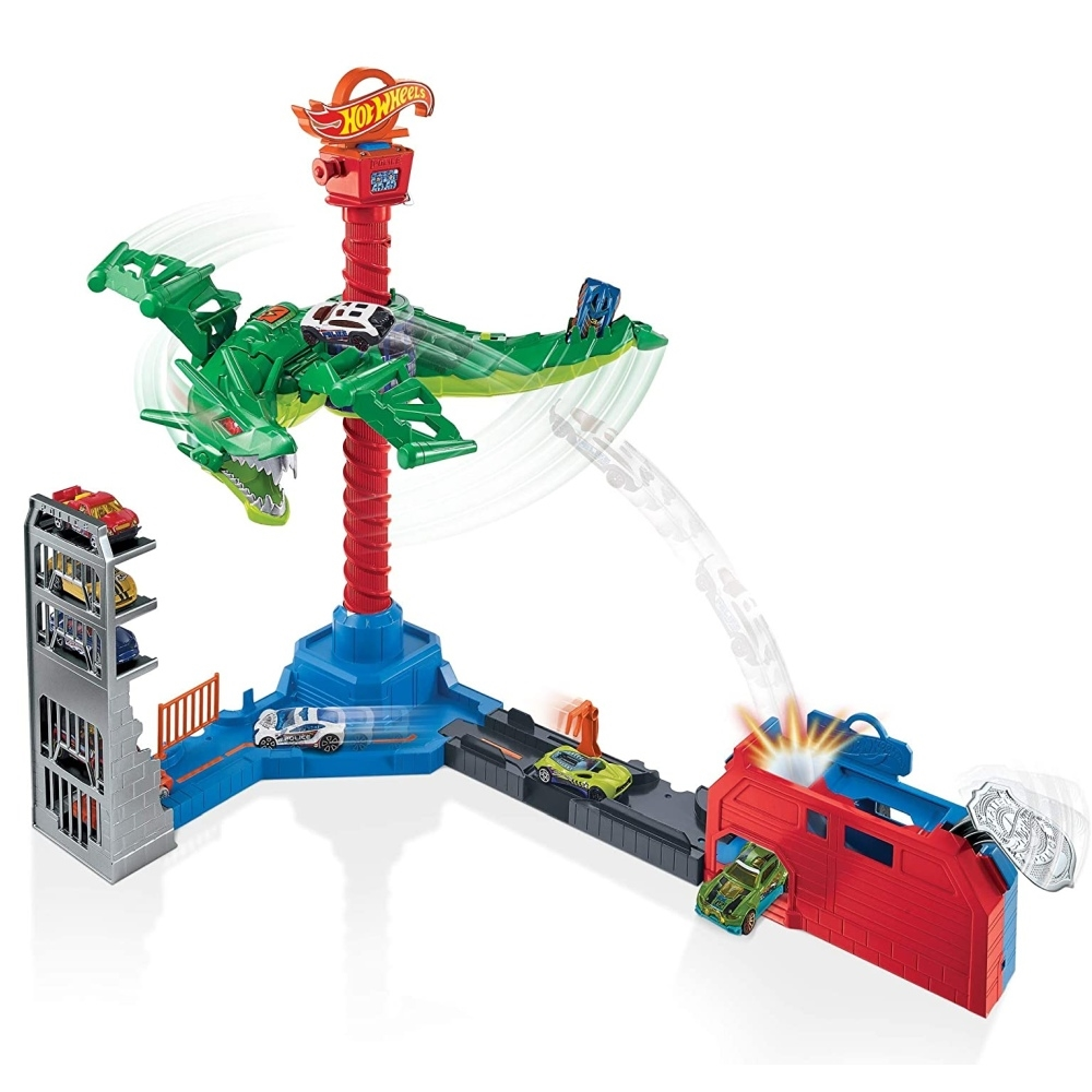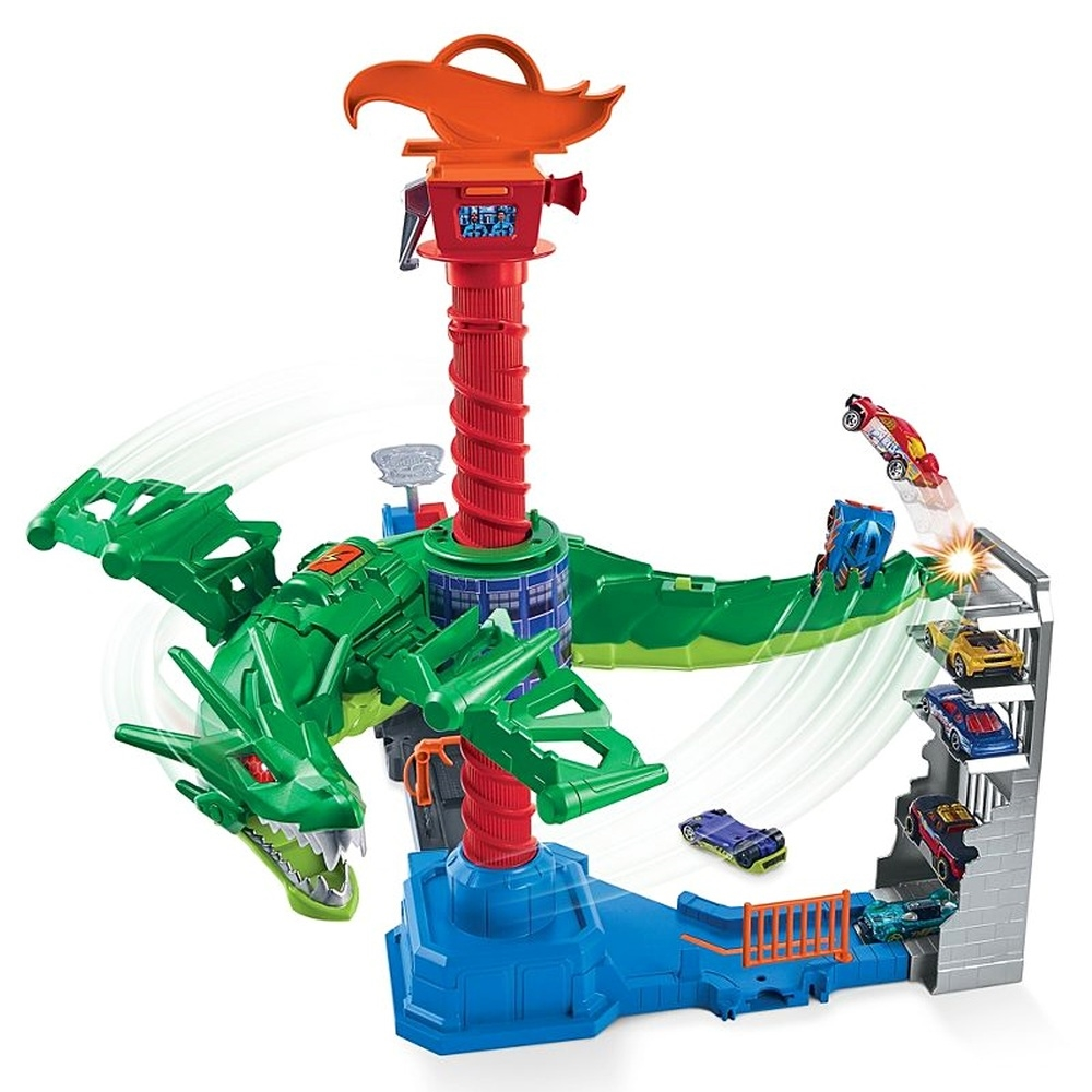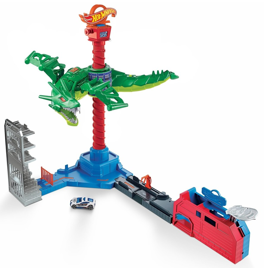 A Hot Wheels Cityt megtámadta egy sárkány. Nem is akármilyen, óriás sárkány. A cél, hogy elkerüld a csapdákat és legyőzd a fenevadat, hogy a város megmeneküljön. A kalandos küldetést szuper hangok kísérik. Mivel sok múlik az időzítésen, a történet változatos fordulatokat tartogat minden egyes alkalommal. A készlet egy 1:64 arányú rendőr témájú járművet tartalmaz és két ponton is összeköthető a többi készlettel. Jó játékot !