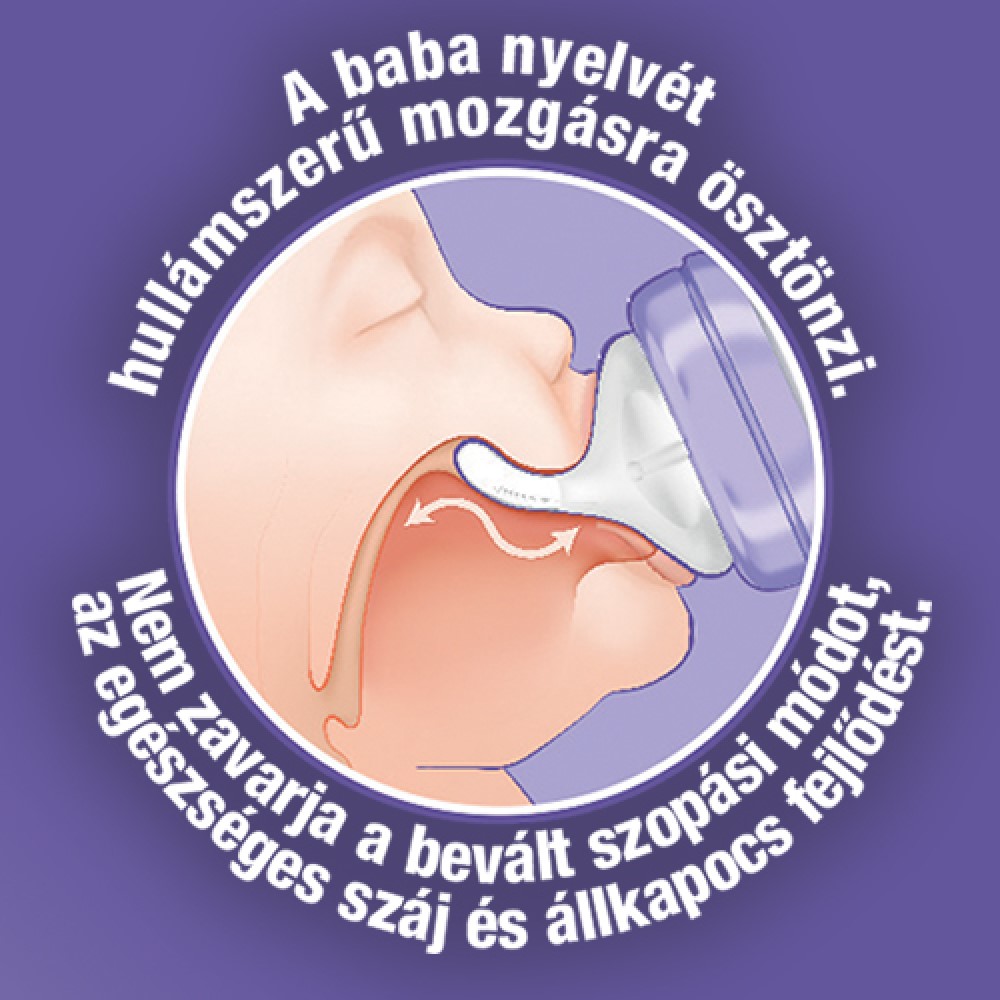 – Egyedülálló, fokozatosan ívelt kialakítása lehetővé teszi a természeteshez közeli szopási folyamatot.