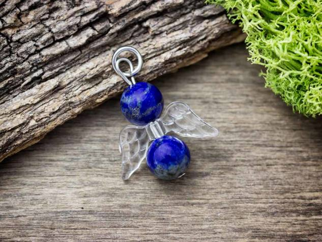 A valódi ásvány medál fém akasztó részét acélból / orvosi fémből készítettük, így tökéletesen antiallergén. Az angyalka szárnya akrillból készült. Az angyalka fejét, és testét valódi 8mm-es lápisz lazuli ásvány gyöngyök alkotják.