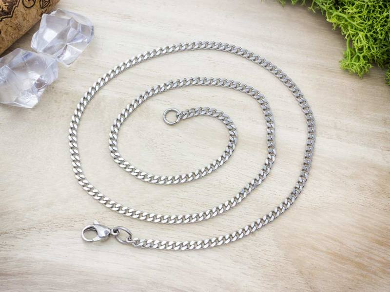 Pancer mintázatú ezüst színű nemesacélból készült nyaklánc.