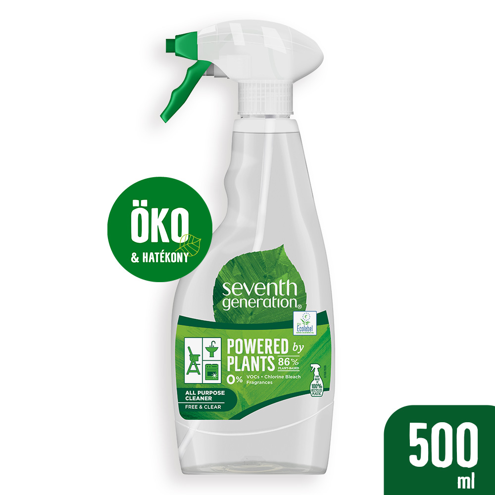 A Seventh Generation illatmentes általános tisztító spray a növények tiszta erejével készült, illékony szerves vegyületek, illatanyagok és klóralapú fehérítőszer nélkül. 86%-ban növényi összetevők alkotják, aminek köszönhetően biológiailag lebomló. Termékeinket sosem teszteltük állatokon, illetve nem tartalmaznak állati eredetű összetevőket. Elnyerték a Leaping Bunny kegyetlenség-mentes minősítését, valamint az EU Ecolabel minősítést. Felülettisztító flakonjaink 100%-ban újrahasznosított műanyagból készülnek és 100%-ban újrahasznosíthatók.