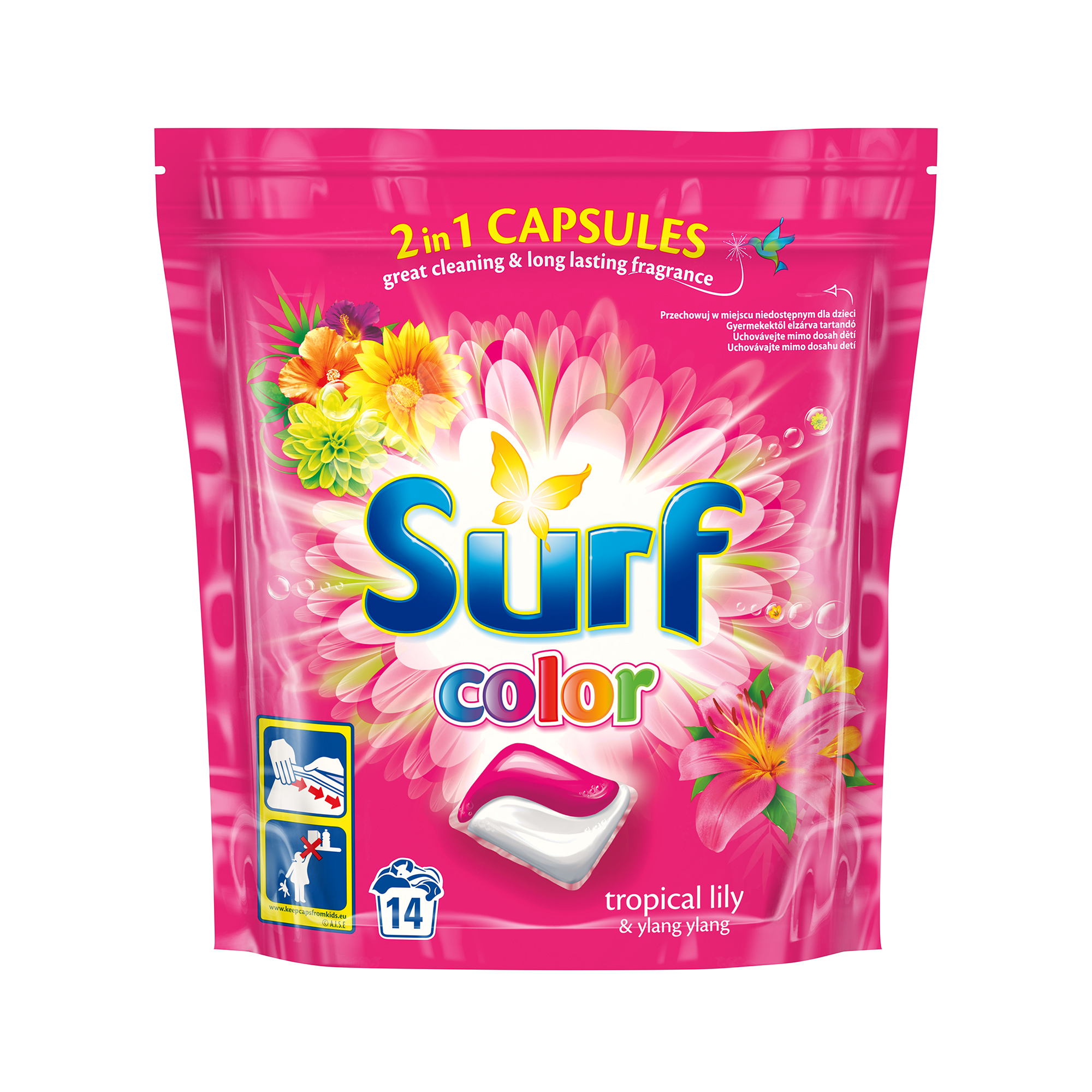 A Surf mosószerek nemcsak kiválóan tisztítanak, de emellett különleges és hosszan tartó illatokkal kényeztetik érzékeidet. A Surf Tropical lily & Ylang ylang két egzotikus virág gazdag illatkombinációja. A liliom mézes és virágos illata nőies, egyben karakteres is, amelynek köszönhetően a világon az öt legkedveltebb vágott virág egyike. Az ylang ylang jellegzetesen édeskés illatával tűnik ki, amely nyugtatja az érzékeket, és a hiedelem szerint újraegyesíti a lelket és a testet. A trópusi liliom és ylang ylang egzotikus illatkombinációja mosópor, mosógél és mosókapszula formájában is elérhető színes ruhák mosásához.