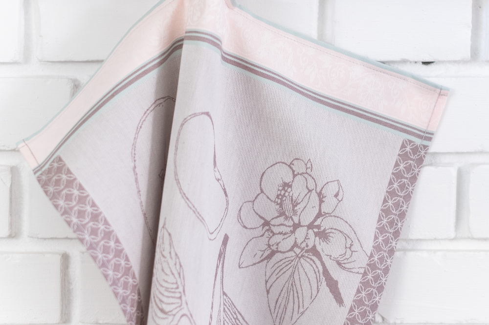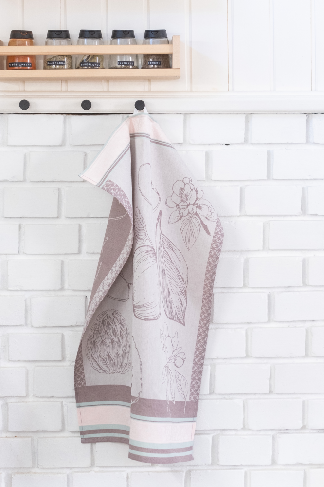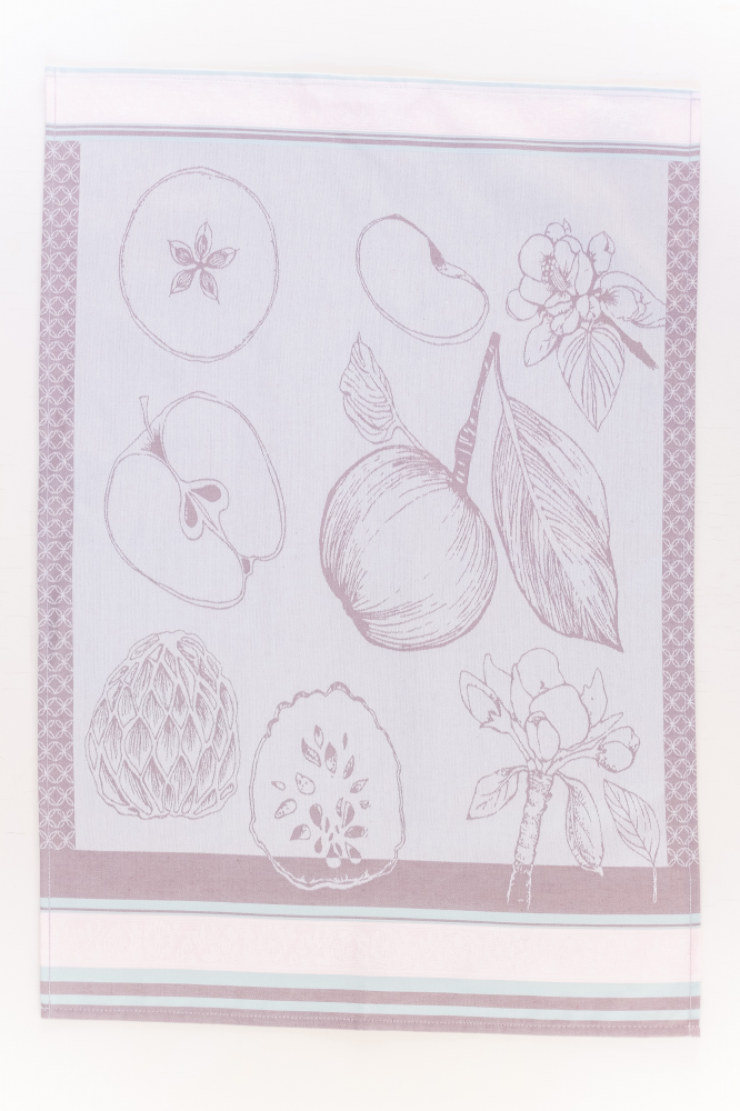 Színes konyharuha, rózsaszínű alapon gyümölcs mintával. Összetétel: 100% pamut. Méret: 50*70 cm.