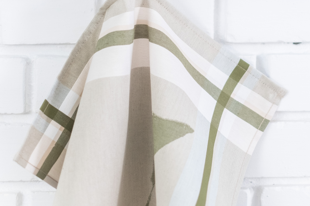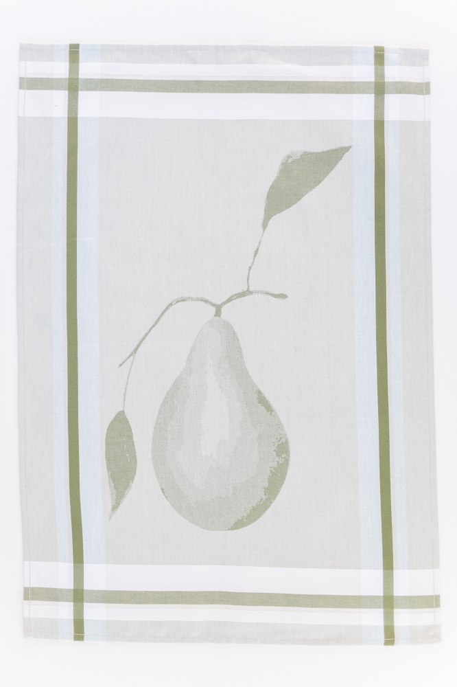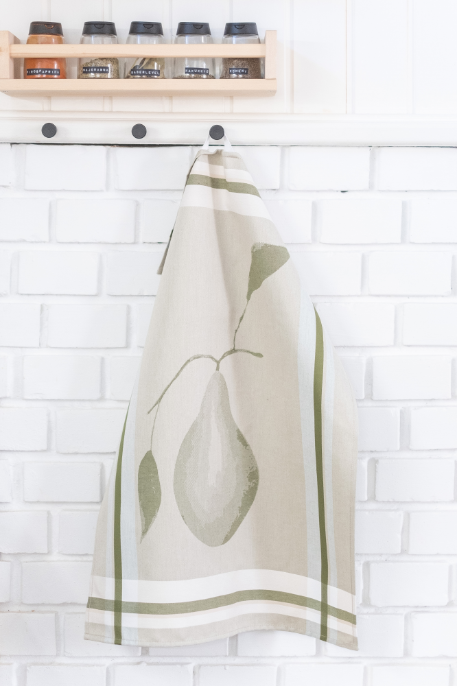 Zöld színű könyharuha, körte mintával. Összetétel: 100% pamut. Méret: 50*70 cm.