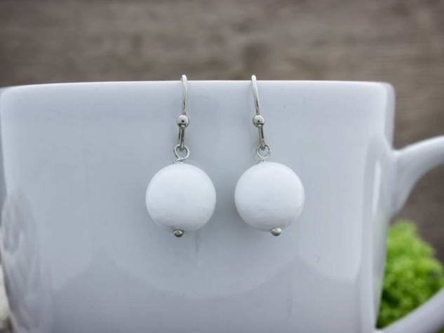 Tejkvarc ásvány gyönggyel díszített lógós ásvány fülbevaló.