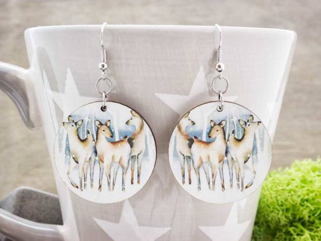 Egyedi tervezéssel készült, géppel alakra vágott, majd megmunkált fa lemezből megálmodott fülbevaló.