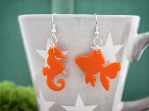 Egyedi tervezéssel készült, géppel alakra vágott, majd megmunkált plexi lemezből megálmodott fülbevaló.