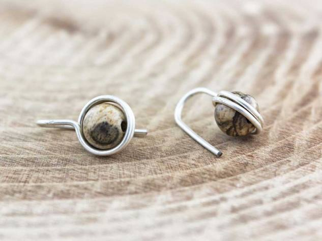 Térkép jáspis lógós drót fülbevaló.