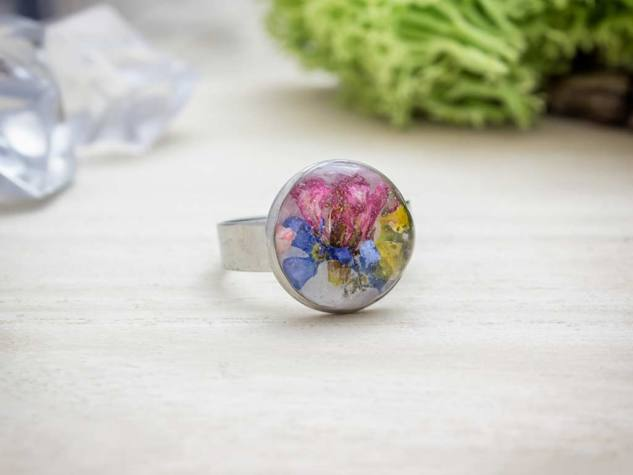 Üde tavaszi virágok öntött műgyanta gyűrű