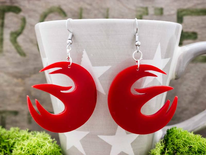 Egyedi tervezéssel készült, géppel alakra vágott, majd megmunkált plexi lemezből megálmodott fülbevaló.